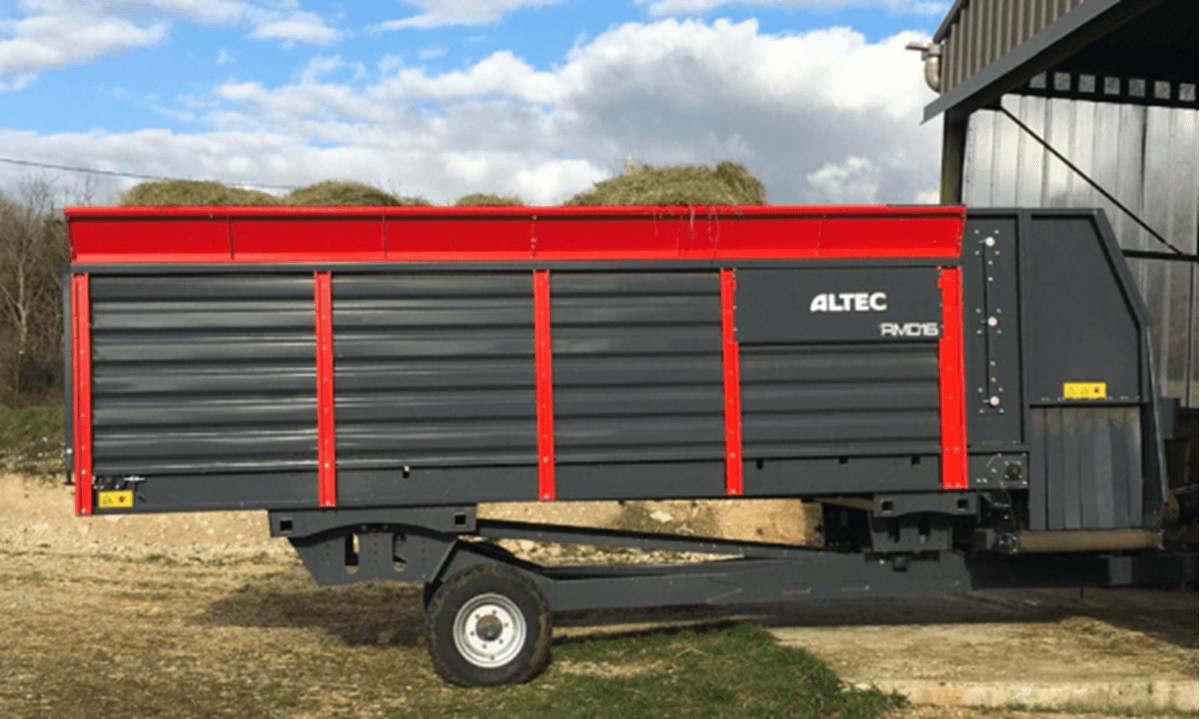Les remorques distributrices RMD attelées à un tracteur conçues pour la distribution des fourrages secs et en vracs sur tapis mécanisés ou le long de cornadis. Essieu 2 roues. Convoyage par tapis chaîne barrette, le fourrage arrive avec régularité aux démêleurs. Equipées de 3 démêleurs mécaniques à doigts rétractables, tapis de distribution transversal droite ou gauche, cuve évasée pour faciliter le chargement. Capacité 13 m³, 16 m³ et 19 m³. Puissance nécessaire du tracteur 50 cm. Grand choix d’équipements possible. Peut être équipé d’une vis sans fin de distribution ou d’un tapis transversal. Disponible en version thermique ou électrique