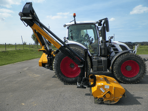 Portée horizontale : 4,80 m. Puissance rotor : 55 cv. Réservoir d'huile grande capacité : 180 L, refroidisseur, suspension oléopneumatique. Flottaison de tête électrique. Commande électrique proportionnelle MINI MOTION. Tête de broyage 1,20 m. Fléaux Y manilles.