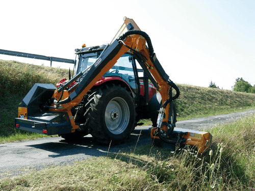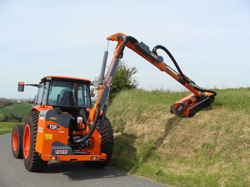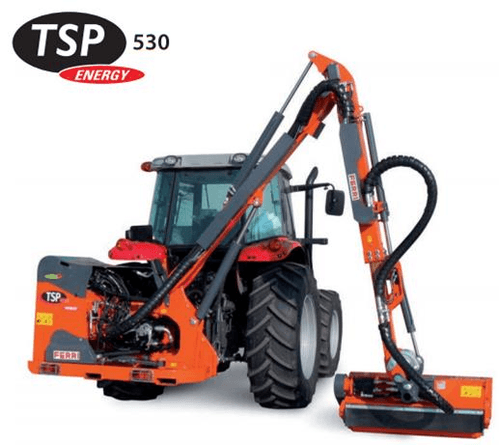 -1- TSP est une gamme de débroussailleuses hydrauliques à bras droits pour des puissances de tracteur de 80 à110 cv. Portée maximale latérale de 5,11 à 6,12 selon le modèle.