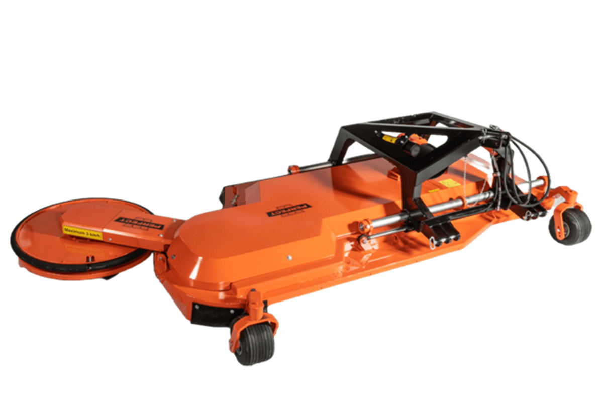 Tondeuse rotative puissante, satellite mobile avec grand déport, faible hauteur pour passage sous la végétation,