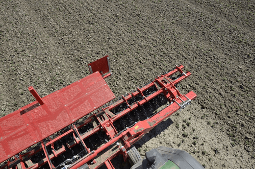 2 rangées de houes rotatives à doigts, la croûte est cassée et émiettée grâce aux pointes des étoiles en forme de cuillère.