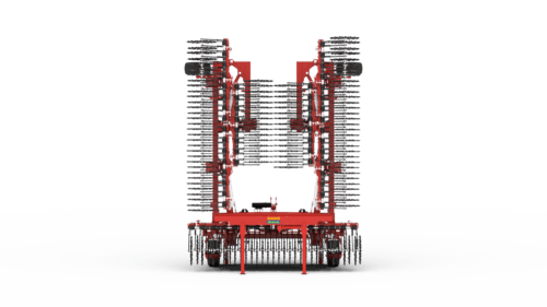 Le système de repliage hydraulique permet d'atteindre une largeur de transport de seulement 3 m et également largeur de transport 3 m pour le modèle 12 m possible par le repliage en portefeuille.