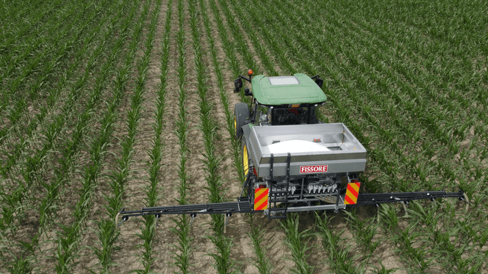 Châssis galvanisé, trémie en acier inoxydable 1000L ou 2000L, en 4, 6, 8 ou 12 rangs. Transport pneumatique de l'engrais. Entrainement électrique des doseurs (un régulateur de tension situé à l’intérieur du tracteur permet de varier la vitesse et donc le volume d’engrais distribué