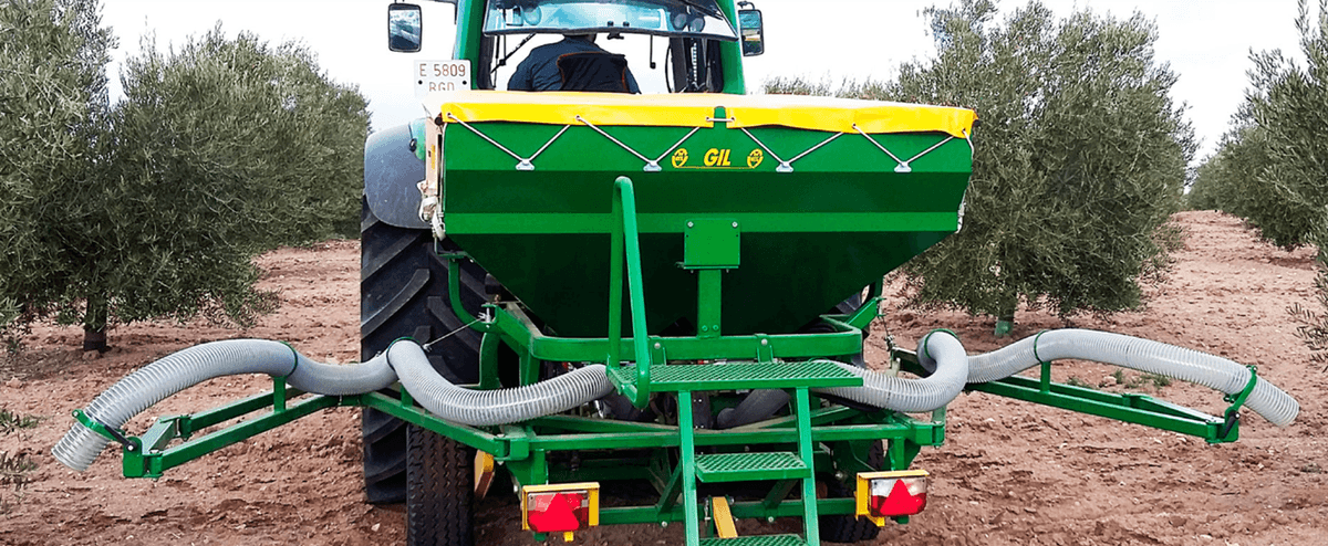 Épandeur d'engrais pneumatique de précision pour oliviers, amandiers et autres arbres fruitiers avec une capacité trémie 2 200 L. Technologie SONAR ou possibilité d’utilisation en mode manuel. Adaptation à différents cadres de plantation. Bras extensible jusqu'à 10 m. 1 distributeur indépendant de chaque côté. Modification de la largeur de travail par ouverture hydraulique. Peut fertiliser un granulaire à partir de 1mm.