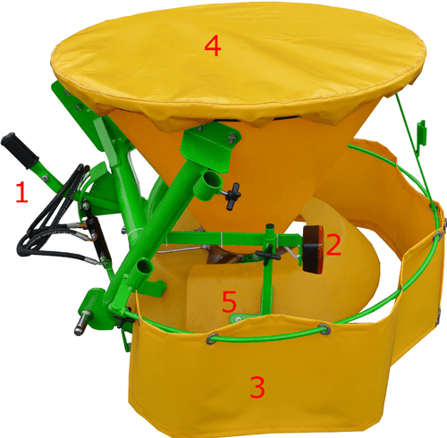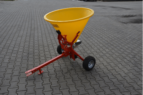 1 - Epandeur d'engrais mono disque traîné avec trémie en plastique :