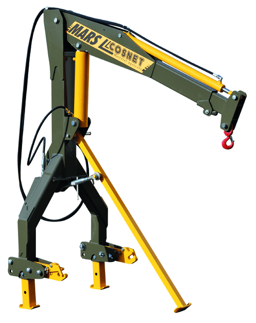 Un lève sacs avec une capacité de levage de 2 000 kg flèche repliée et 1 250 kg flèche déployée.