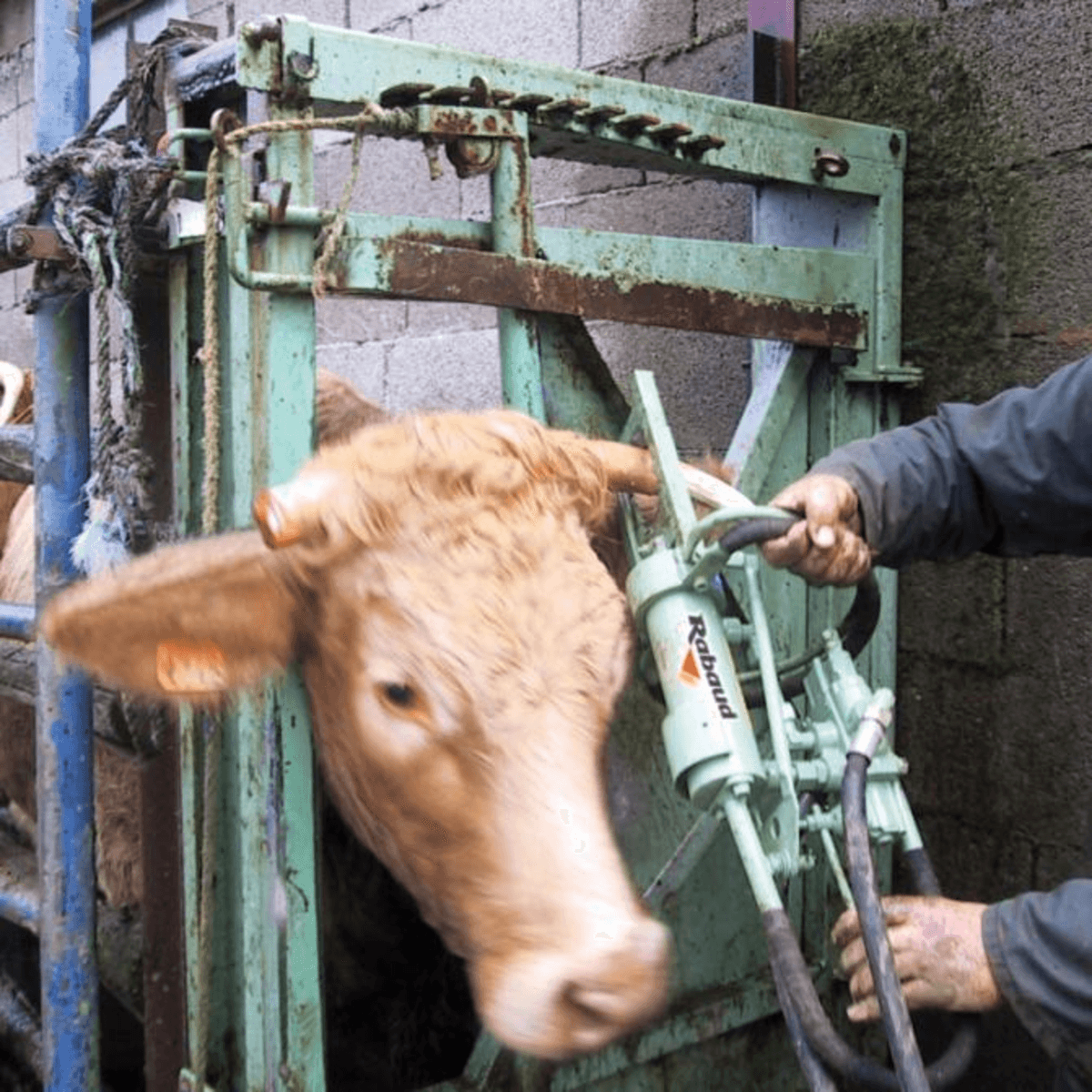 Une écorneuse à bovin hydraulique afin de sectionner, sans bruit, les cornes pour éviter le stress des animaux, et ce de façon rapide. La corne passe entre 2 couteaux dont un fixe et un mobile et permet une coupe franche et rapide par un précepte de guillotine. Parfait pour diminuer les menaces de blessures lorsque que l’éleveur conduit les bovins pour l’insémination ou pour l’alimentation.