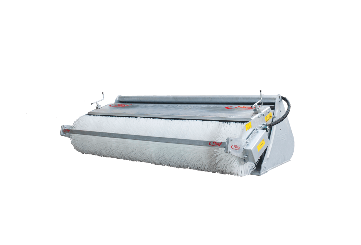 Rouleau brosse 2,40 m, en plastique, godet 0,80 m³. Attelage Euro. Galvanisé. Supplément pour montage chargeur ou télescopique. Autre rouleau brosse disponible.