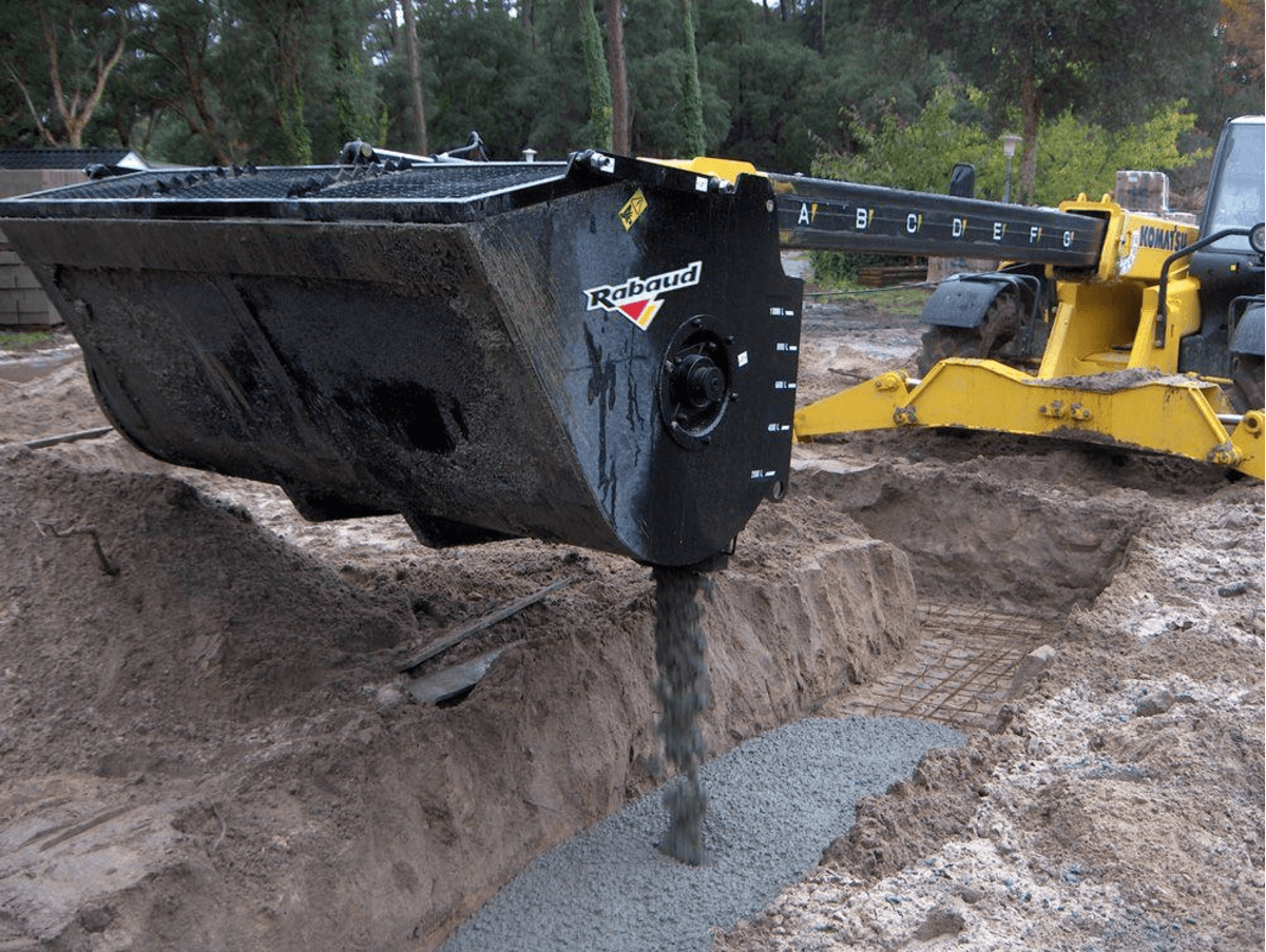 Le godet malaxeur à béton TUBOMIX s’adapte à différents porteurs tels que télescopique, chargeur, pelle, mini-pelle...afin de ne pas utiliser un camion toupie et d’apporter la quantité nécessaire au bon endroit. Équipé de véritables pales en acier anti-abrasion interchangeables rapidement permettant un mélange des matériaux de façon homogène et rapide. Disponible en différents volumes, de 100 à 1100 litres pour s’ajuster à l’engin porteur. Moteur hydraulique sans drainage diminuant les coûts de montage. Les godets TURBOMIX GB avec grille boulonnée et les godets TURBOMIX GH à ouverture de grille hydraulique.