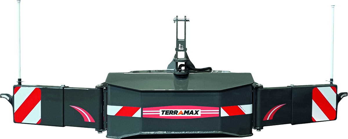 Pour masse en acier. Outil de confort et de sécurité routière. Réglable en largeur (selon la voie du tracteur) et en hauteur par le système du relevage. Ajustable sans outils et sans efforts physiques. Repliable de chaque côté latéralement à la masse, selon les besoins et les travaux. Vendu sans masse.