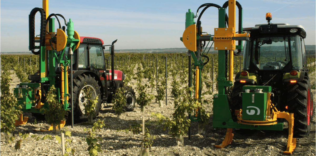 Une grande gamme d’enfonces pieux (en bois ou métallique) pour les vignes avec attelage 3 points ou montage à l’avant entre les roues du tracteur ou sur machine à vendanger et enjambeur ou pour les vergers sur minipelle, pelle et chenillard pour les endroits difficiles d’accès. Choix d’équipements en option pour chaque utilisation.