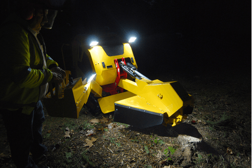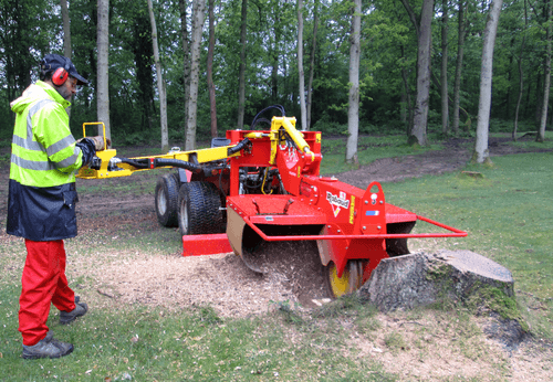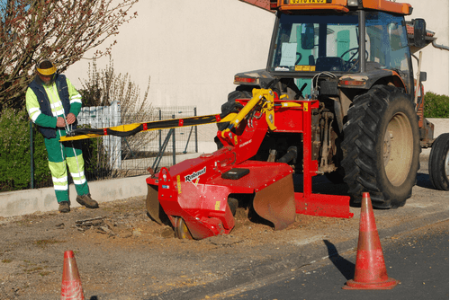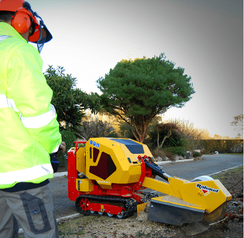 Tablier réglable en hauteur pour optimiser les capacités de fraisage de la rogneuse.