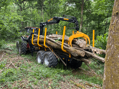 Une gamme complète de remorques forestières pour tracteur. PTAC de 4,5 T jusqu’à 18,3 T. Homologation routières sur toute la gamme. Possibilité de grues forestières avec portée jusqu’à 9,5 m. Qualités professionnelles, flexibles protégés, rallonge de remorque de série, jantes renforcées (cerclage et protection valve), timon orientable par 2 vérins, équipements à la carte : ranchers, rallonges, plateforme…. Pour les remorques 11,3 ; 14,5 ; 16,3 et 18,3 T, le choix au client entre les ranchers cintrés classique ou les berces type "Porteur"