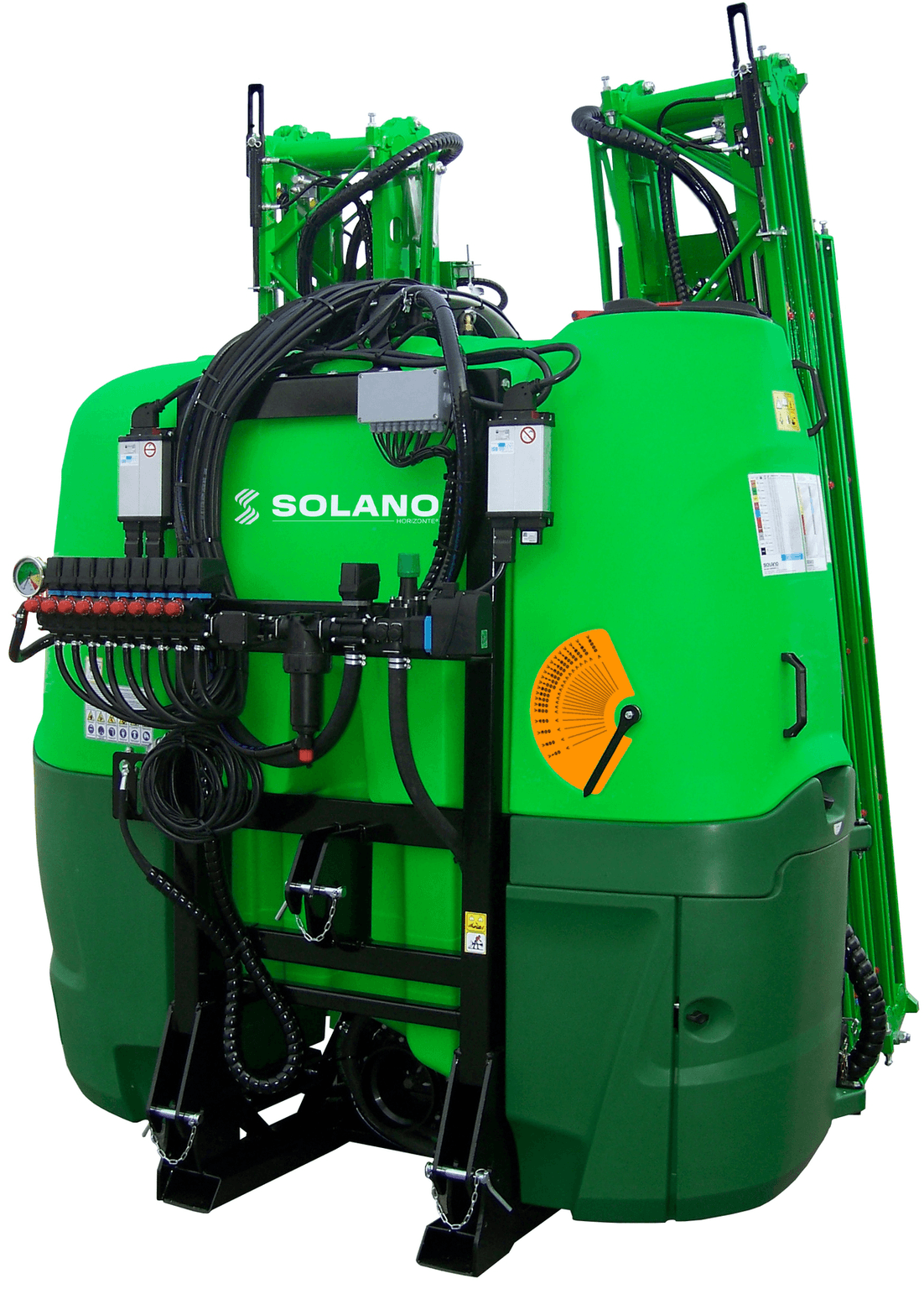 Le pulvérisateur de base, pouvant aller de 1200 à 2000L, est fabriqué à partir d'un châssis en acier ainsi que la tôle. Le réservoir est en polyéthylène avec des réservoirs auxiliaires lave-mains et rince circuit. Peint en poudre polyesther qualicoat, il possède un marche pieds rabattable, des rampes hydrauliques avec ouverture droite/gauche découplée et un porte-buses en plastique trijets antigoutte de série. Fourni avec un filtre d'aspiration muni d'une vanne de sécurité, un filtre de pression sur régulateur. Possibilité de Isobus ou DPAE. Beaucoup d'options a choisir en option selon vos besoin.