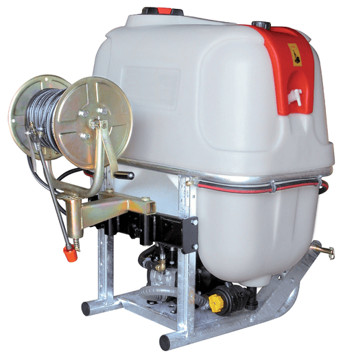 400 L. Châssis galva, pompe APS 40/40, vanne 3 voies, enrouleur, tuyau, lance, cardan, 50 m de tuyau.