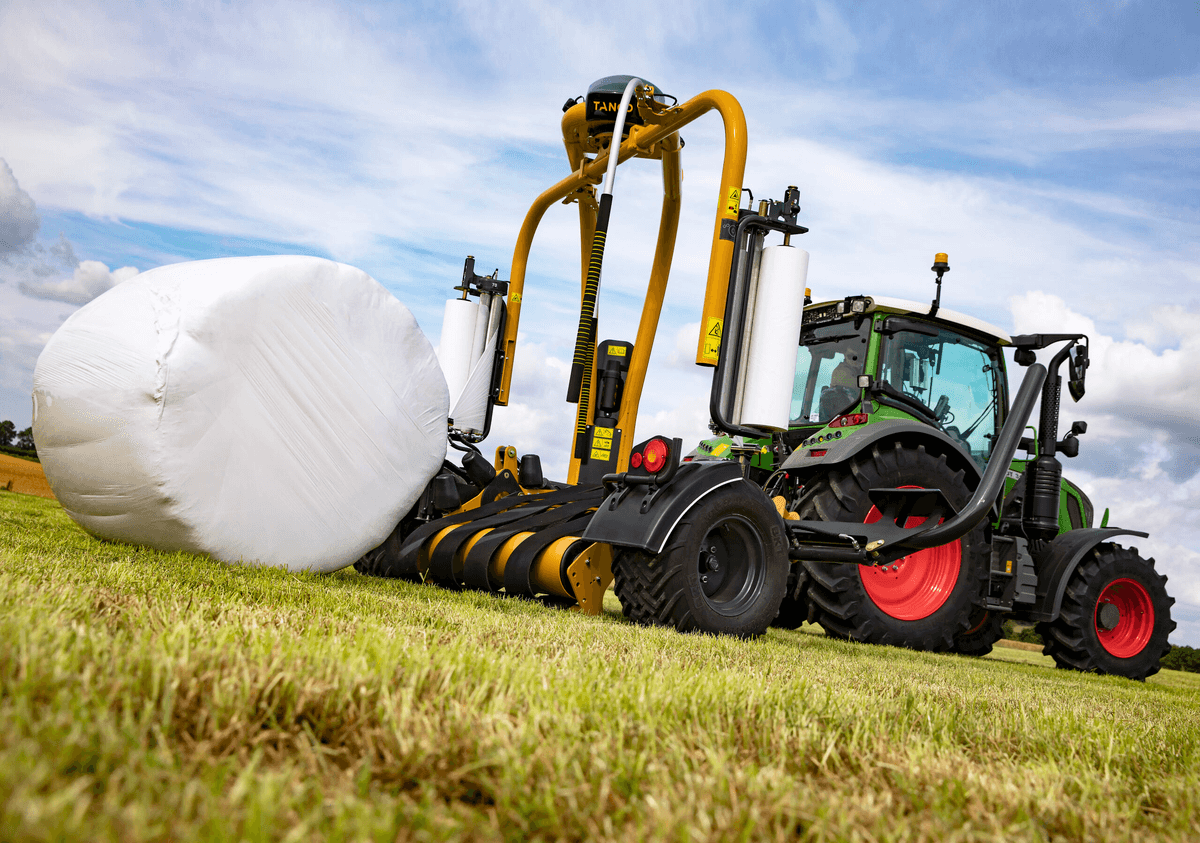 Enrubanneuse portée à 3 points pour balles rondes jusqu’à 1,7 m de diamètre et balles carrées jusqu’à...