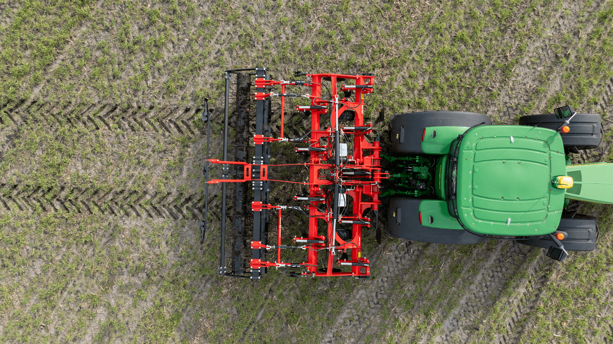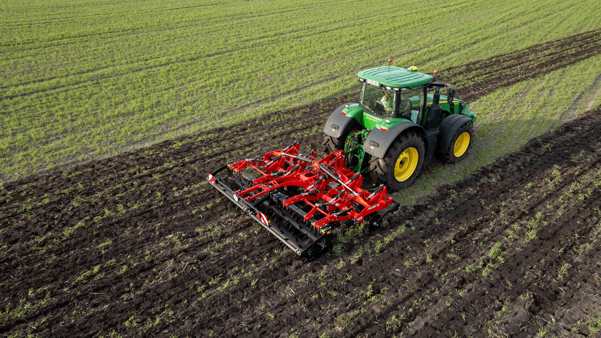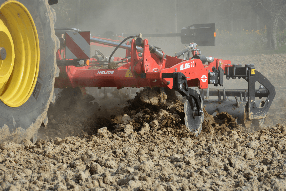 Largeur de travail 4,50m : 9 dents, tracteur 210 à 330cv, ou 5,50m : 11 dents, tracteur 280 à 400cv, double-poutre portée repliable en 2 parties, tous les réglages depuis la cabine, sécurité boulon ou hydraulique, 4 rouleaux disponibles