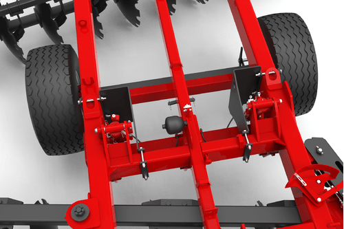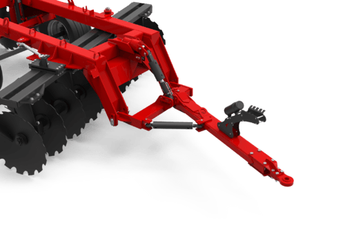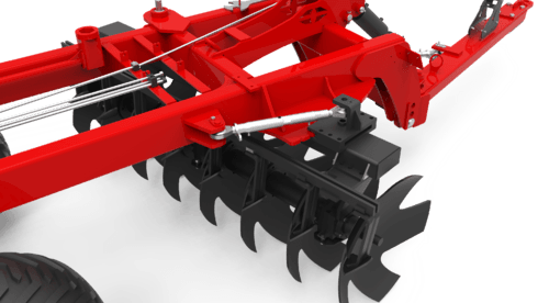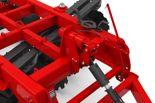Le réglage de la profondeur de travail peut se faire par l'angle des trains de disques. Pour doser l'agressivité de vos disques il faut ajuster le terrage grâce à la butée sur le vérin réglable de l'essieu.