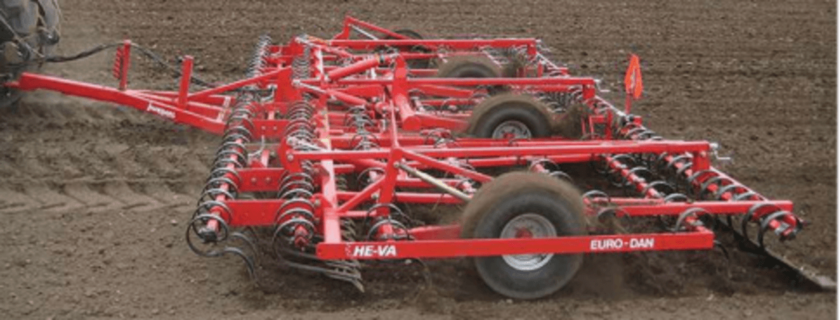 1 - Le vibroculteur Euro-Dan Eco équipé de 4 rangées de dents de herse pour une profondeur contrôlée, réglée et régulière de la herse et un compactage uniforme avec de grandes roues maintenant une profondeur constante sur tous types de sol même difficiles. Disponible de 5 m à 8 m de largeur de travail. Grands choix d’équipements en option pour de nombreuse combinaisons pour différentes tailles d’exploitations. Machine parfaite pout lit de semence pour les betteraves, le maïs et les céréales, etc.