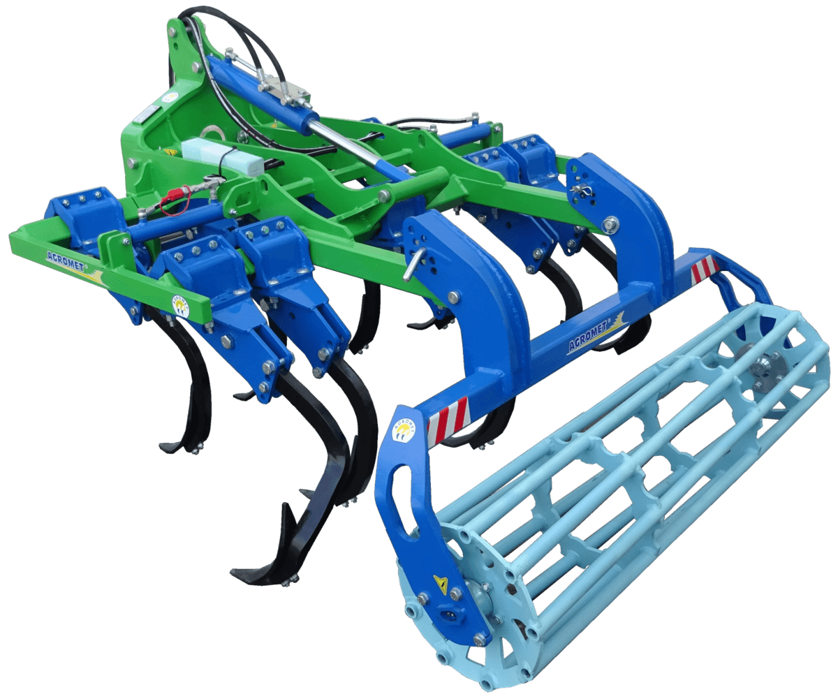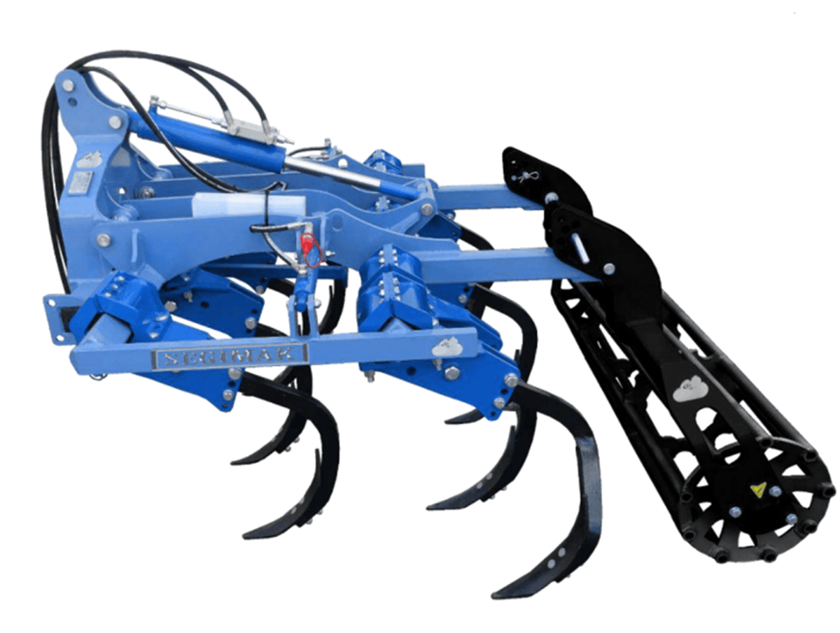 Gamme de cultivateurs HUECHA composée de modèles avec élastomères décalés sur 4 rangées (50 cm entre les bras), bras forgés 30x30, châssis 80 x 80 x 8 mm et deux options de dents en acier au bore : 50 X 30 ou 30 X 30. Distance des dents entre toutes les rangées 25 cm. Sa profondeur de travail peut atteindre jusqu'à 20 cm. Attelage barre à boulons. Équipé avec rouleau à barres. Modèles à 5,7, 9 et 11 dents avec une largeur de travail de 1 m mini à 2,90 m maxi et de 0,90 m mini à 2,30 m maxi pour les modèles à élastomère réduit
