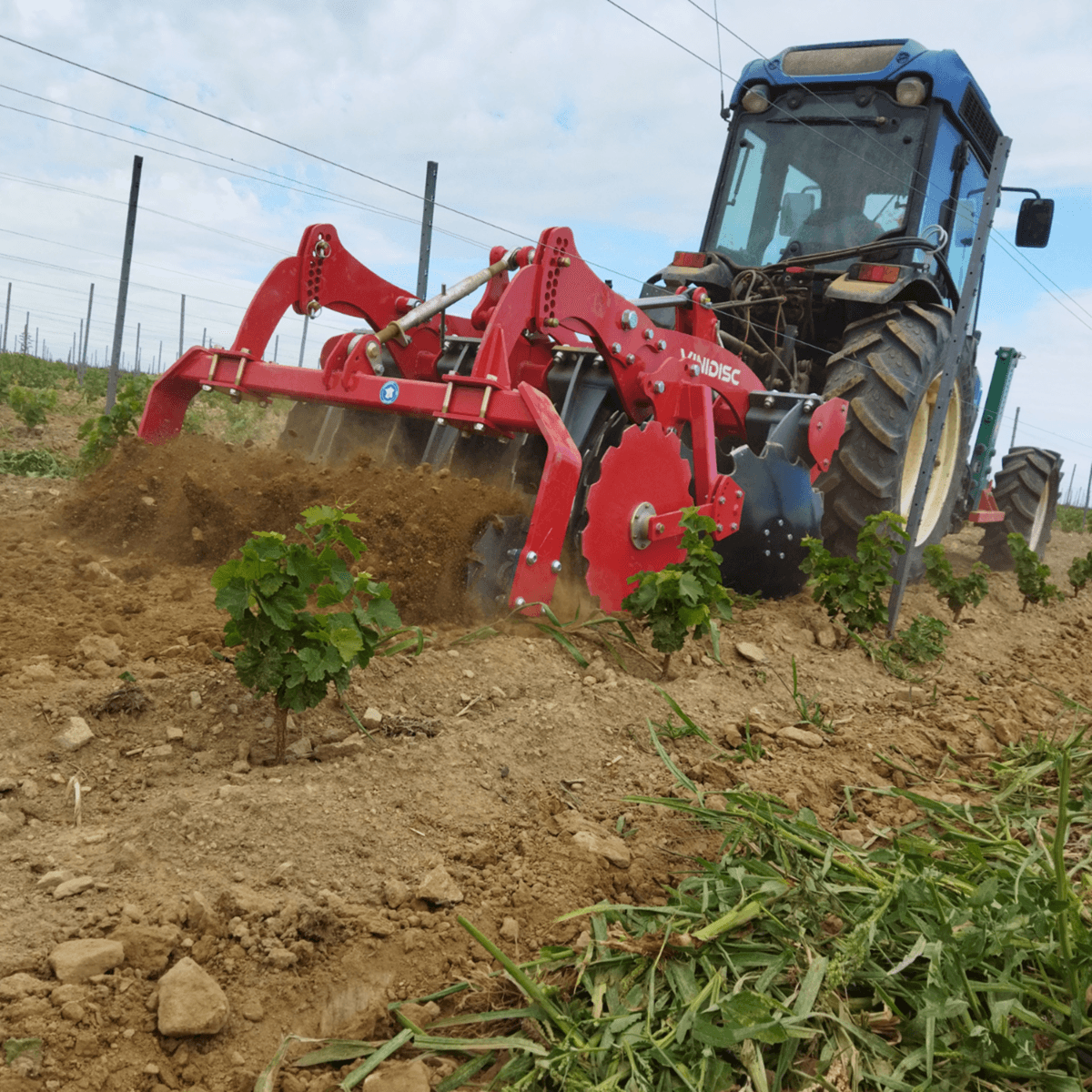 Le VINIDISC est un déchaumeur à disques indépendants porté pour les inter-rangs entre 1,5 m et 3 m dans les vignes et vergers. Equipé d’un attelage catégorie 1 et 2 avec un châssis poutre acier de 80 x 80 x 8 mm, il permet en travaillant en profondeur de gérer les résidus avec ces disques crénelés et un système de sécurité non-stop avec 4 amortisseurs. Largeur de travail de 1,15 m à 1,6 m. Choix d’équipements et accessoires en option pour chaque utilisation.