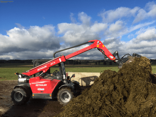 Valet de ferme télescopique compact non articulé destiné pour agriculture, paysage et BTP.