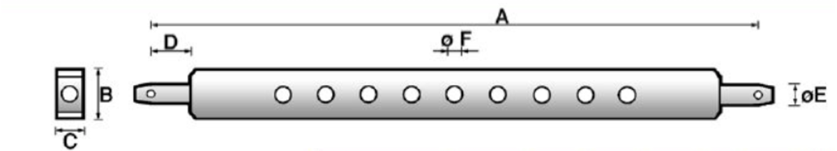 Catégorie 2. 7 trous. Long. A 760 mm. Long. B (hors tout) 915 mm. Long. entraxe 890 mm. Larg. 80 mm