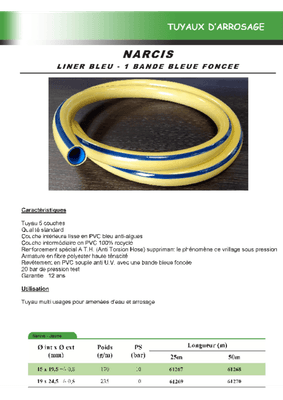 Ø15. Longueur 50 m. PVC souple anti-UV. Pression maxi : 20 bar.