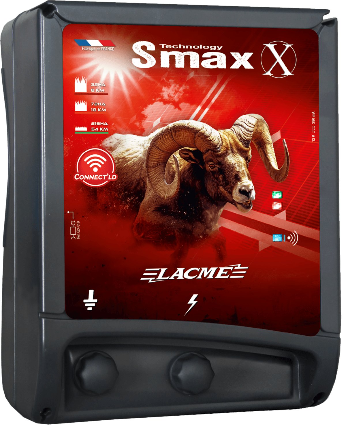 Électrificateur secteur SMAX X Connect'LD, 13200 Volt, 10 Joules équi. Techno Power BOOST 3 à très haute tension permettant de transporter l'impulsion même à travers les herbes denses et sur de très longues distances.