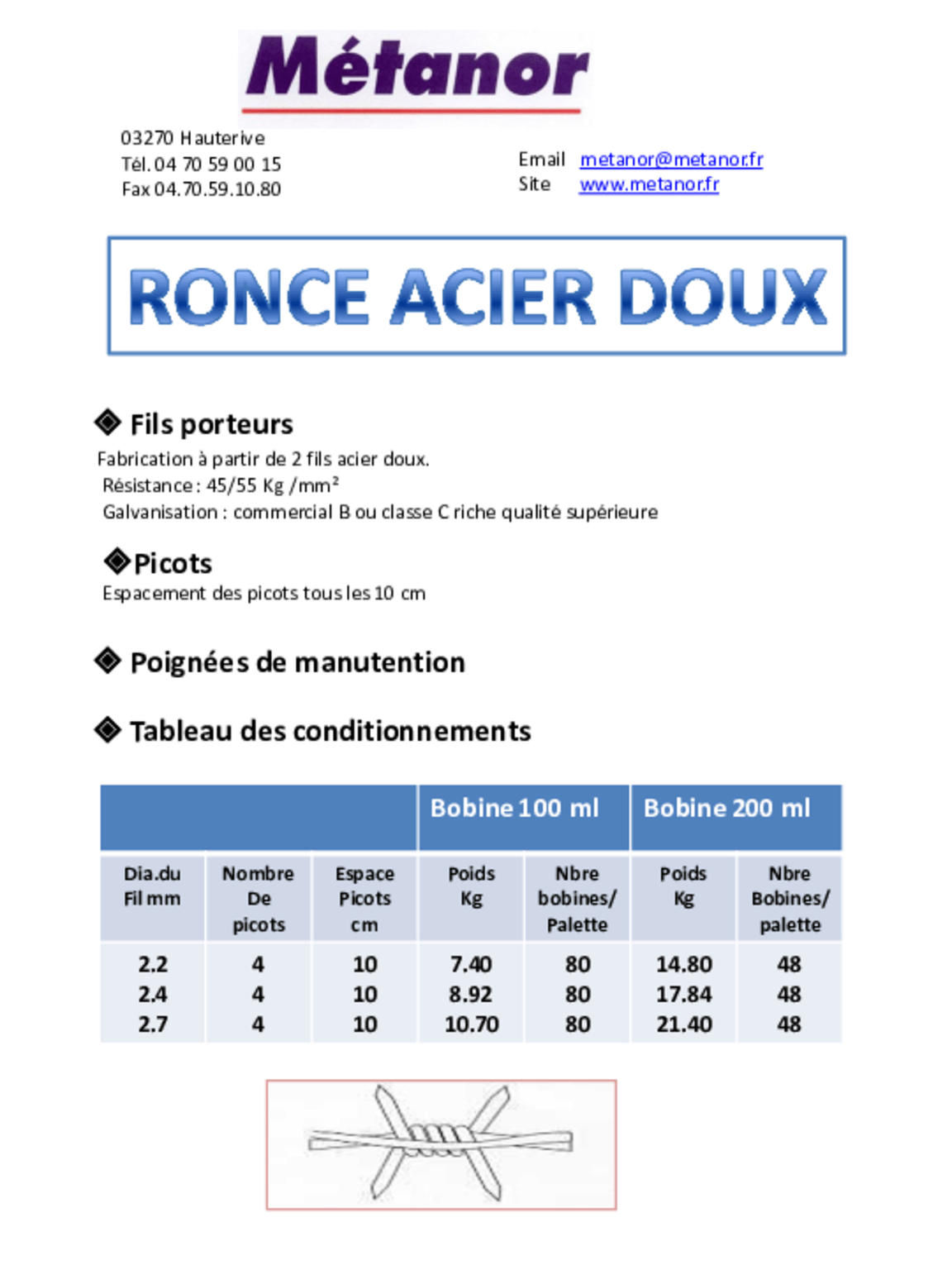 Fil lisse en zingue. Diamètre : 1,6 mm. Rouleau de 5 kg.