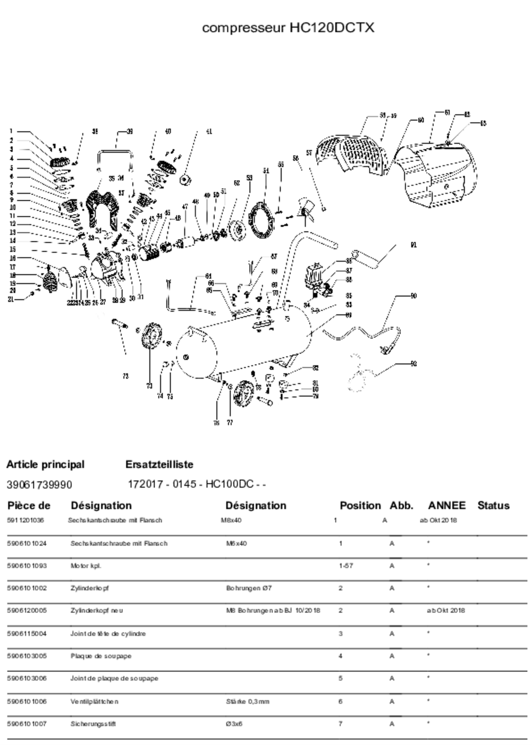 Sans huile. 6 L. Débit restitué : 61 L/min, 8 Bar. Moteur bicylindre S1, 0,75 CV. 220 V.