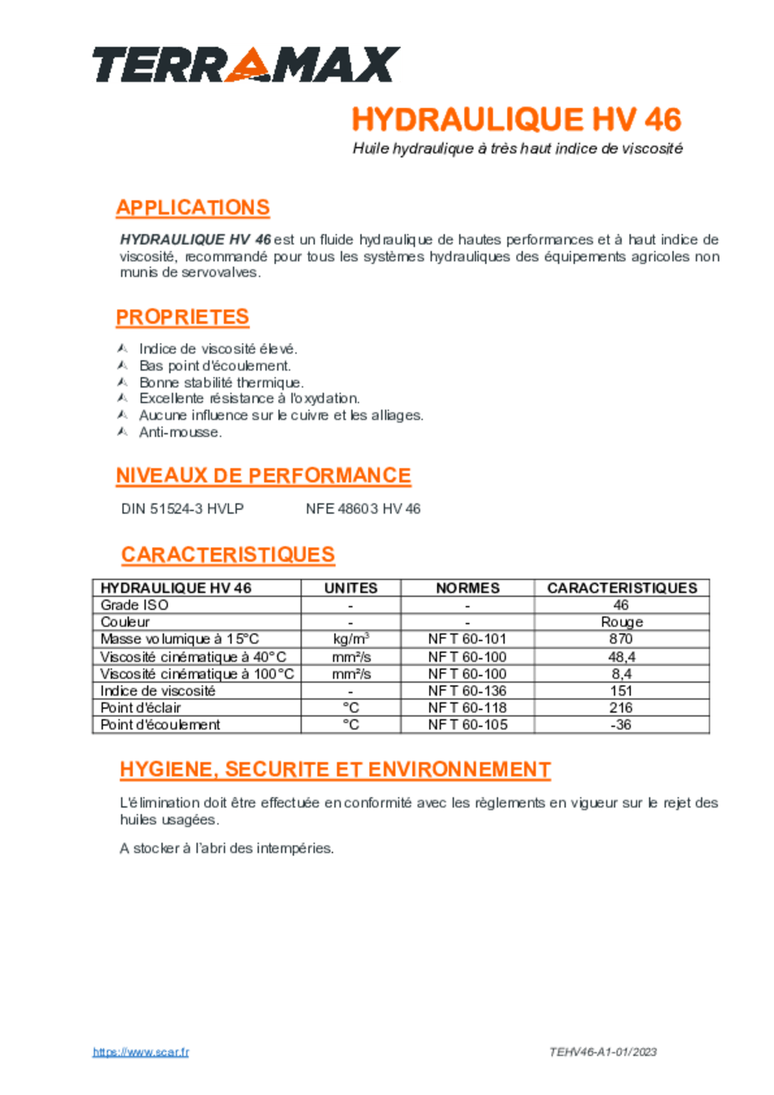 Fluide hydraulique de hautes performances recommandé pour tous les systèmes hydrauliques.