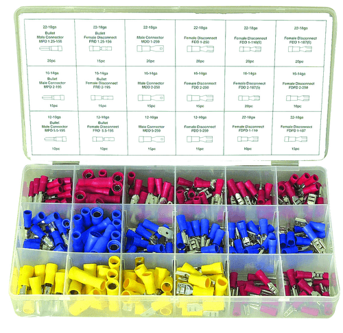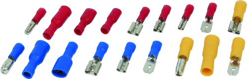 140 cosses pour fil électrique de 0,25 à 1 mm² : 35 rondes, 105 plates.