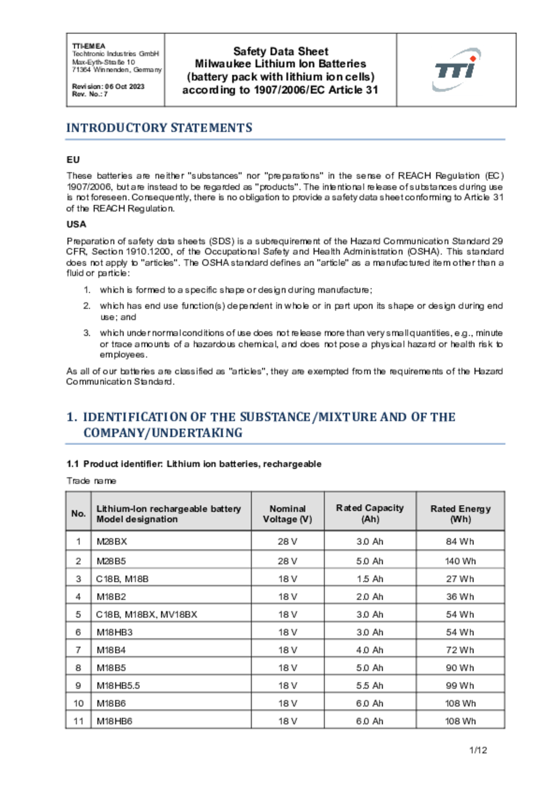 1 chargeur M12-18C, temps de charge 40 minutes.