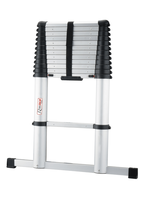 Echelle télescopique. Hauteur pliée : 1,01 m. Hauteur dépliée : 3,80 m. Largeur : 49 cm. Légère : 13 kg. Nombre d'échelons : 13. Charge max : 150 kg. Déploiement partiel ou total. Utilisation en intérieur et extérieur. Profil rectangulaire en aluminium avec rainurage antidérapant. Montants cylindriques coulissants en aluminium avec verrouillage automatique de sécurité sur chaque section. 2 leviers de déverrouillage pour chaque section. Conforme à la norme EN 131.
