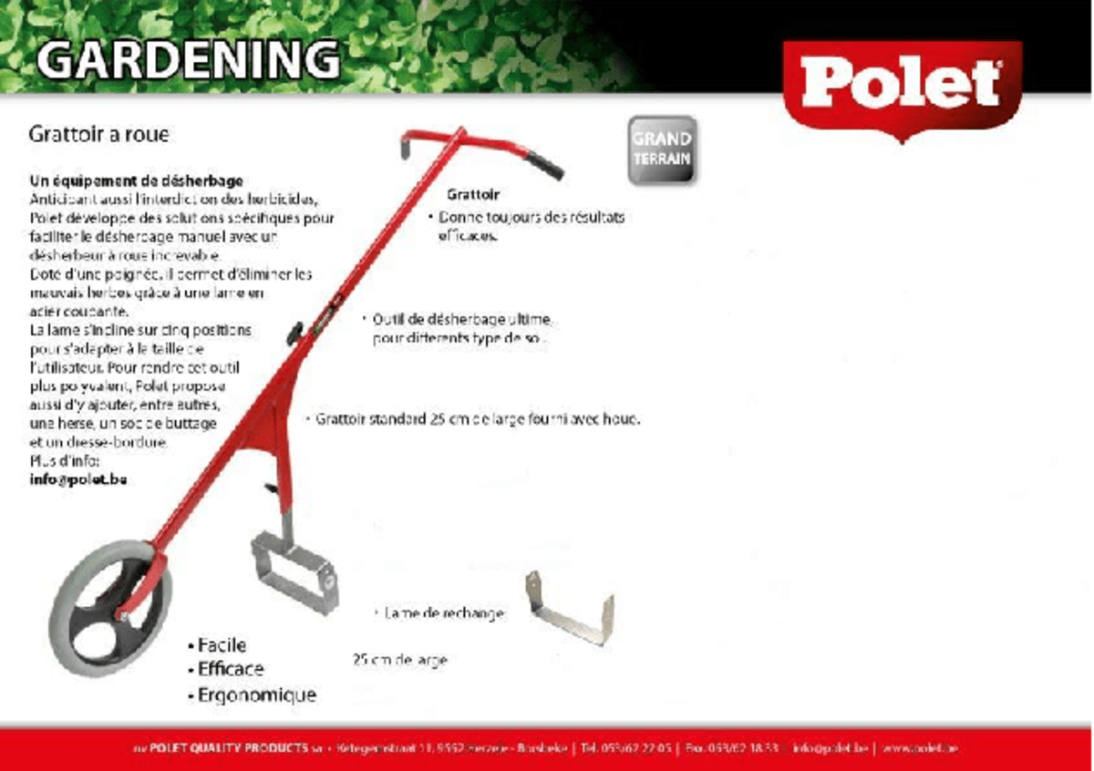 Outil pour arracher les mauvaises herbes pour différents types de sol. Binette 25 cm.