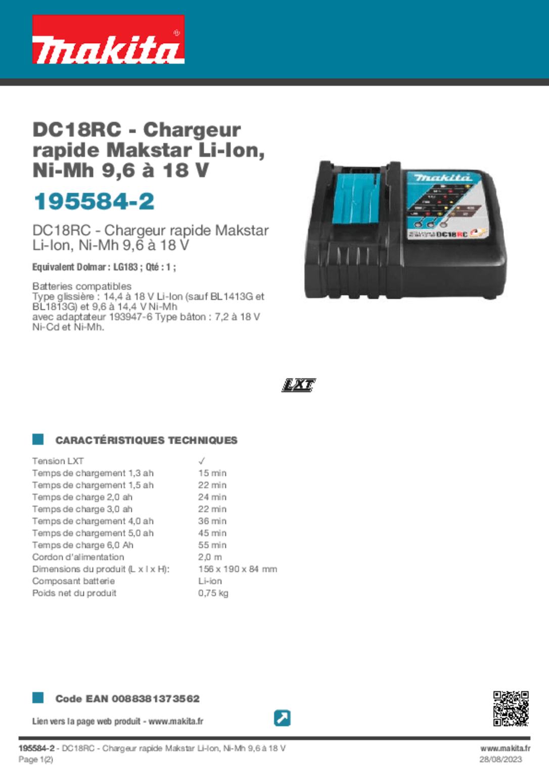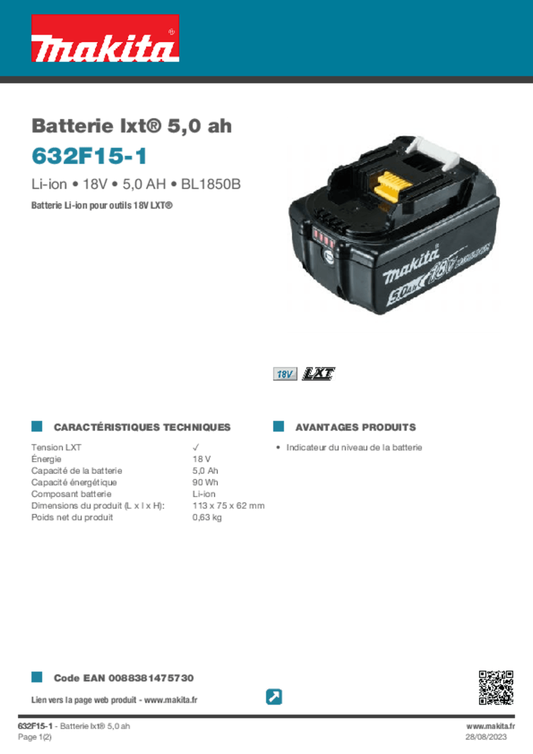Diamètre disque : 125 mm. Diamètre alésage : 22,23 mm. Régime à vide : 8500 tr/min. Poignée à revêtement Soft Grip pour plus de confort. Livrée avec : carter à ébarber 125 mm, batterie LXT 5 AH et chargeur rapide Makstar.