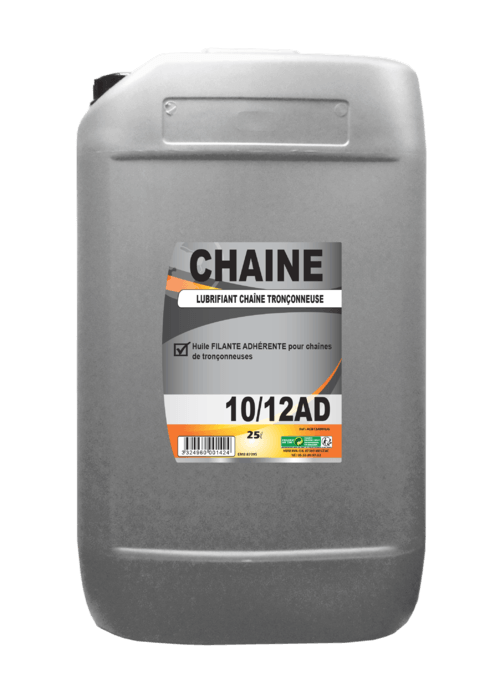 Lubrifiant pour chaîne de tronçonneuse et d'abatteuse. 10/12 AD. Usage professionnel. Filante et anti-usure....