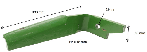 Longueur : 300 mm. Largeur : 60 mm. Epaisseur : 18 mm. Diamètre trou : 19 mm. Pour série KE 303. Gauche.